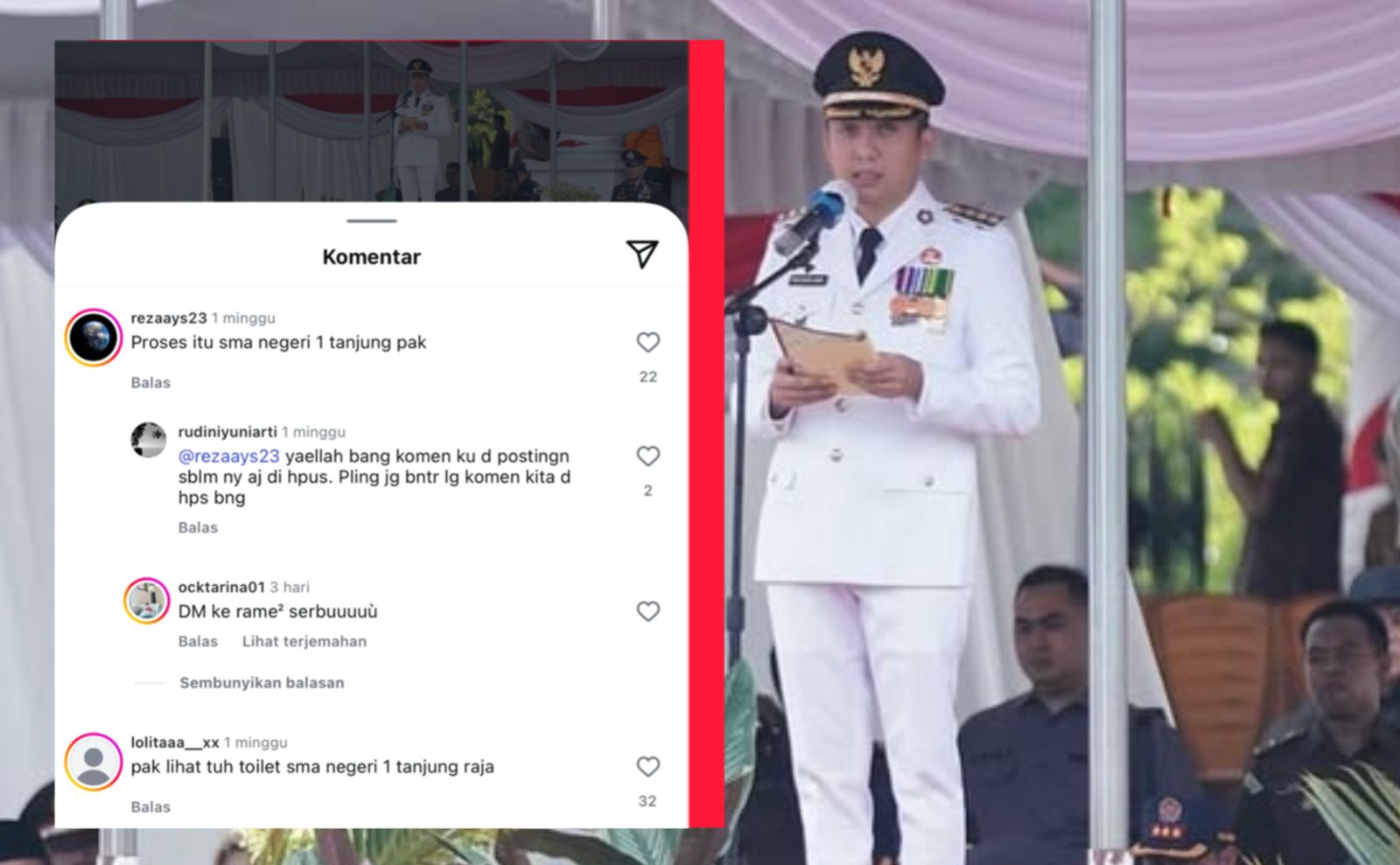 ”Pak lihat tu toilet SMA Negeri 1 Tanjung Raja,” tulis lainnya.